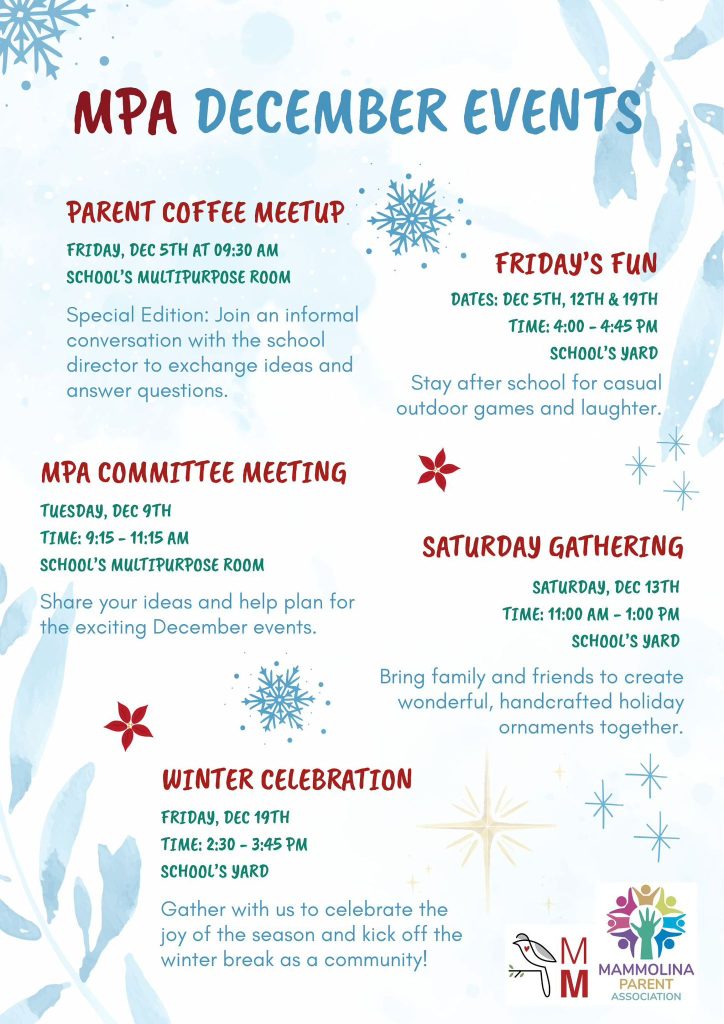 We are the Mammolina Parent Association (MPA), a volunteer group of parents and caregivers, just like you.